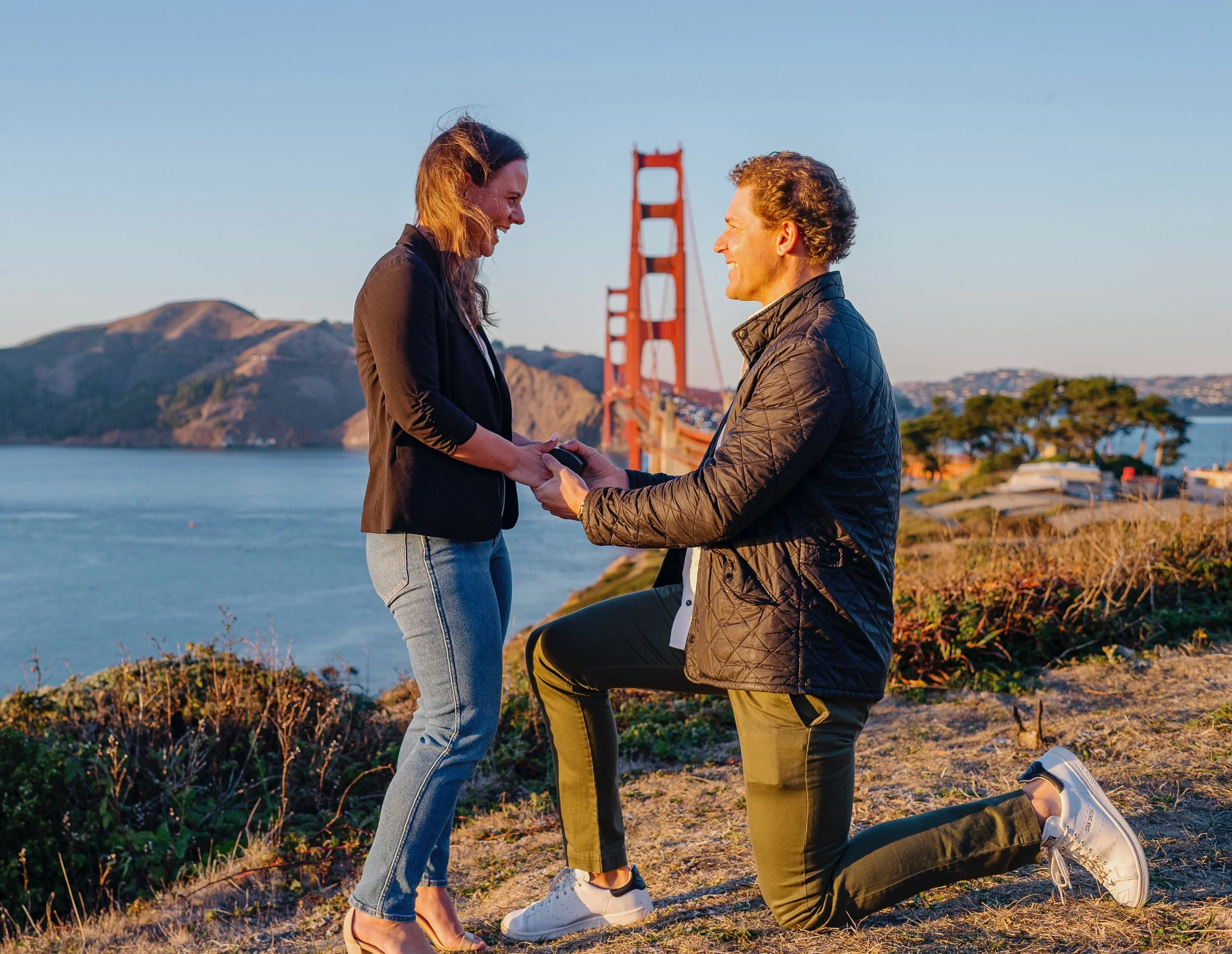 A week later, they went on their first date - Kat’s first ever in the city and Tyler’s first time hitting it off with someone so quickly. Kat, used to dating Chico boys, felt a mix of nerves and excitement about meeting a “more refined” man that went to Santa Clara. She even texted her friend Kaitie for advice on what drink to order and borrowed a leather jacket from her friend Alison (because who in SF actually owns jackets? Certainly not Kat). Tyler, on the other hand, remembers being struck by her energy and charm - he knew this date wouldn’t be their last.